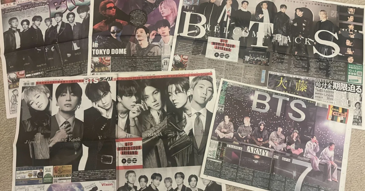 O grupo sul-coreano BTS mostrou mais uma vez sua popularidade ao aparecer nas capas de cinco dos principais jornais esportivos do Japão, como Nikkan Sports e Sports Nippon, nos dias 17 e 18 de outubro de 2023, após realizar uma série de shows no icônico Tokyo Dome. Essa conquista ressalta o impacto cultural e comercial que o grupo exerce no país, onde os fãs continuam a apoiar suas atividades com entusiasmo.